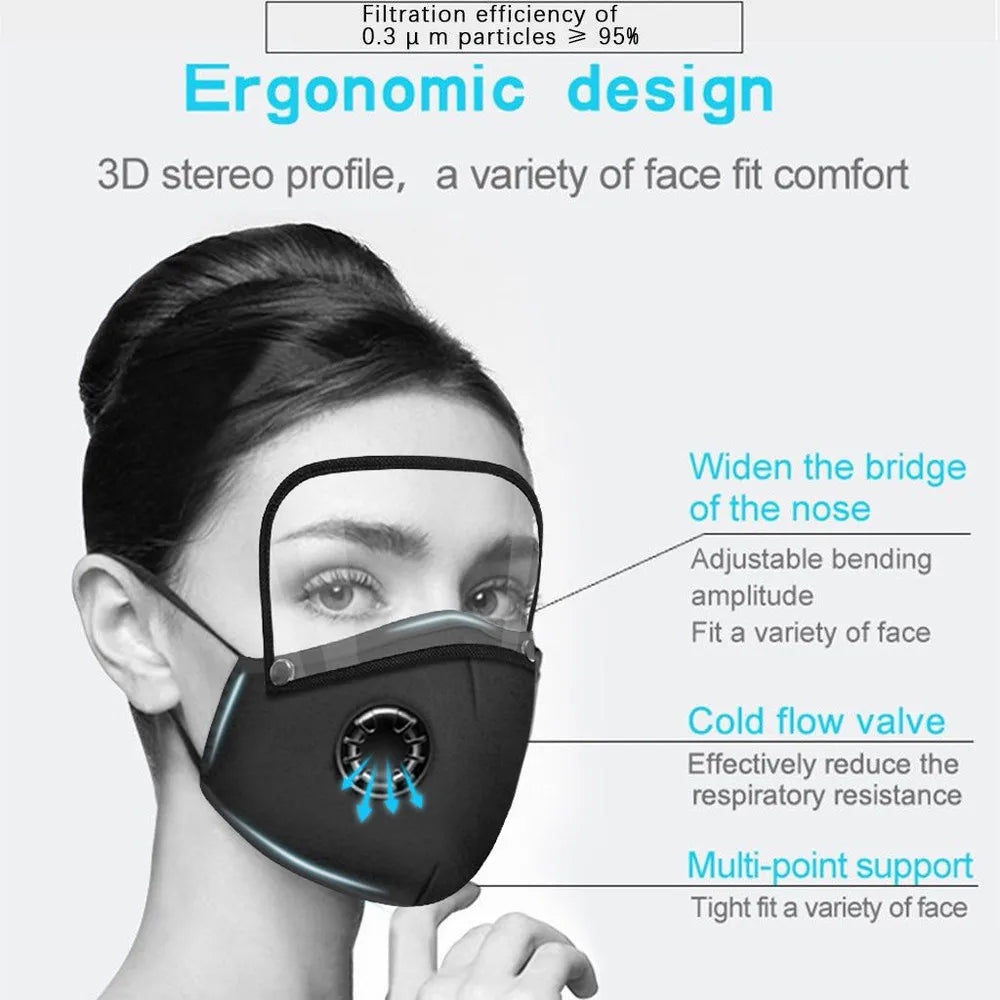 Reusable Washable Face Masks with10 Replaceable Pm2.5 Filter Mouth Mask Dust Windproof Cotton Valve Respirator with Goggles Mask